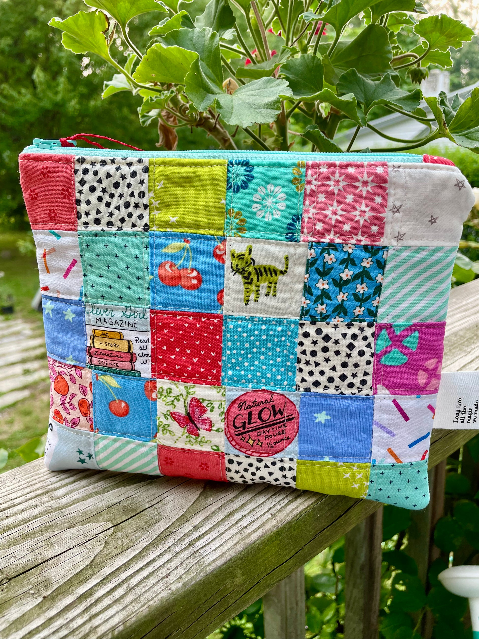 Bag is machine quilted for added stability and texture, and fully lined. I use cotton batting and quilt shop quality fabrics for all my pieces.