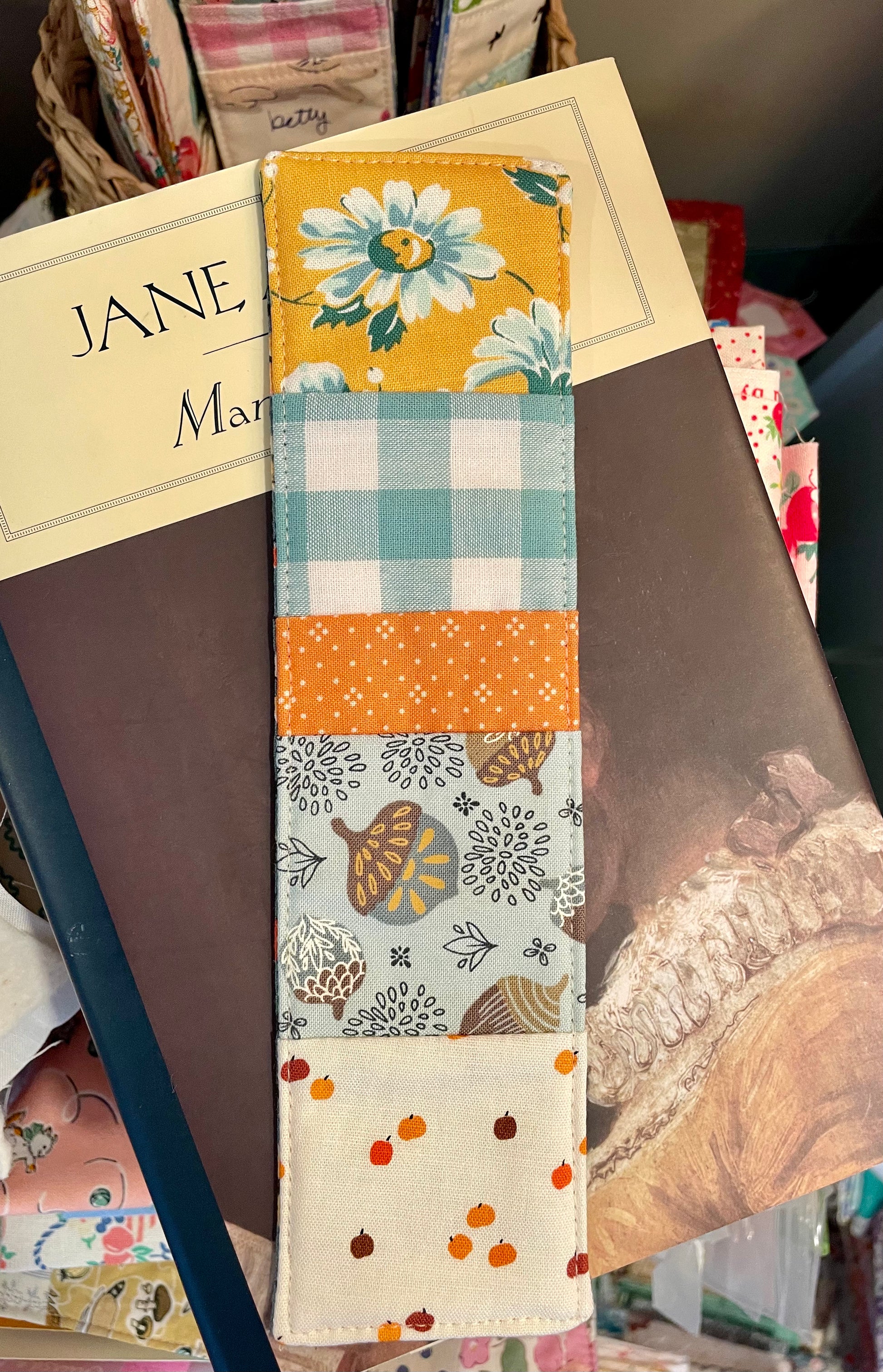 Add some cozy and color to your book with a sweet patchwork bookmark. Also great to mark a place in a journal or planner.