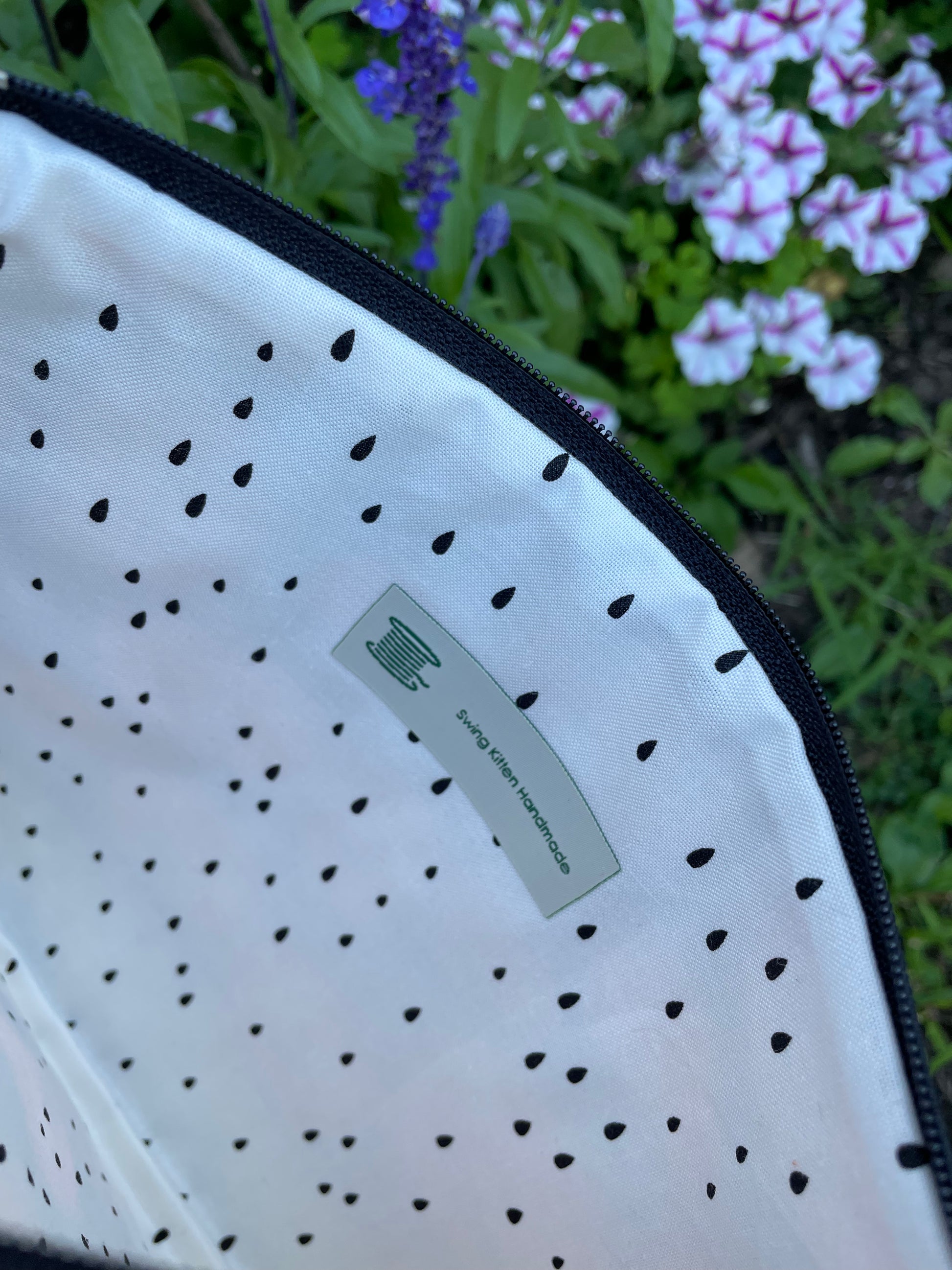 I used all designer, high quality quilting cotton for the outside, and for the coordinating lining. Fusible interfacing adds stability.