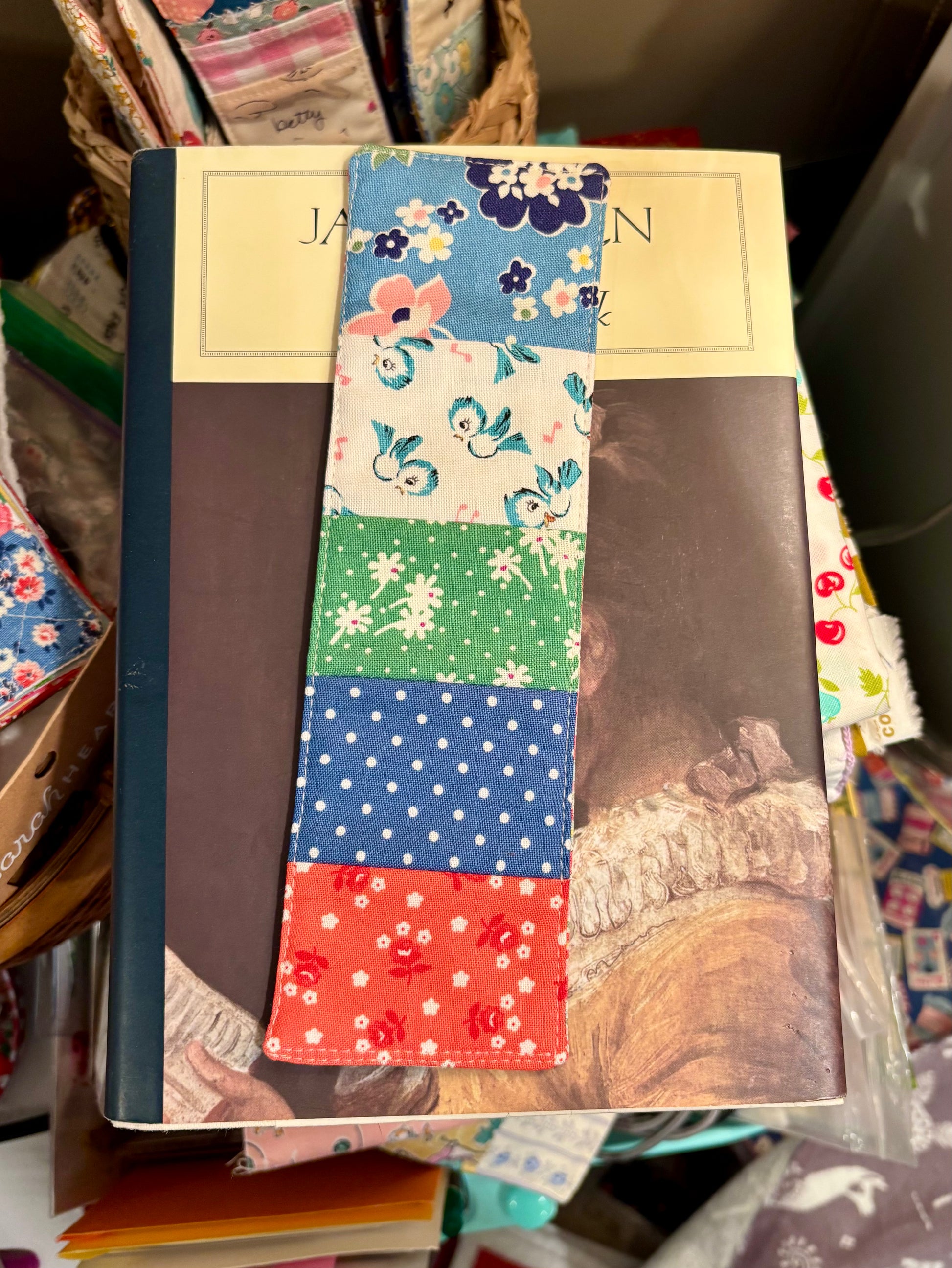 Add some cozy and color to your book with a sweet patchwork bookmark. Also great to mark a place in a journal or planner.