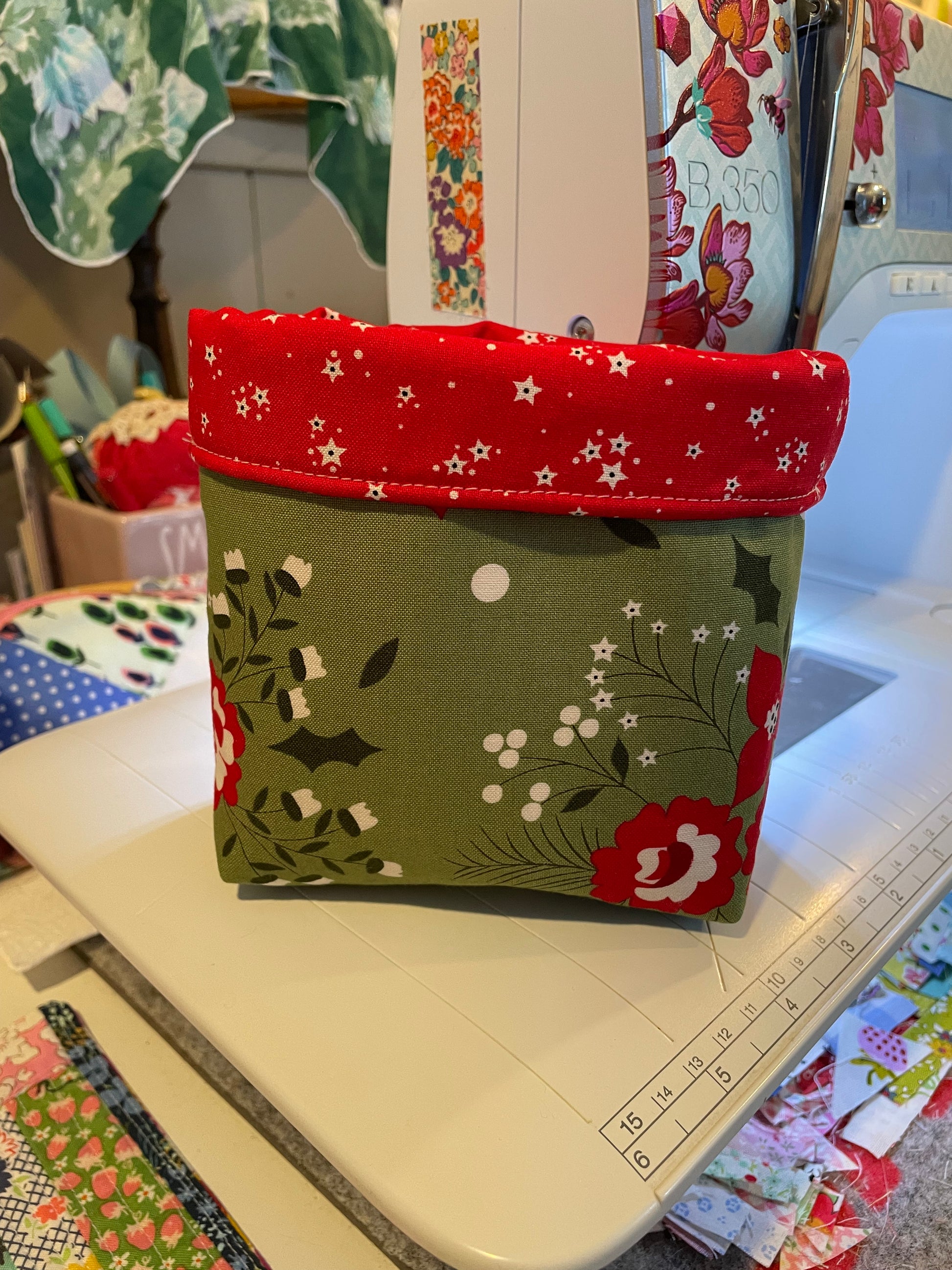 Sweet fabric bucket has many uses! Organize in the bathroom, kitchen, sewing space or in an office. Can also use as decor in any room. Or fill it with cookies and a gift card to make an excellent holiday gift.