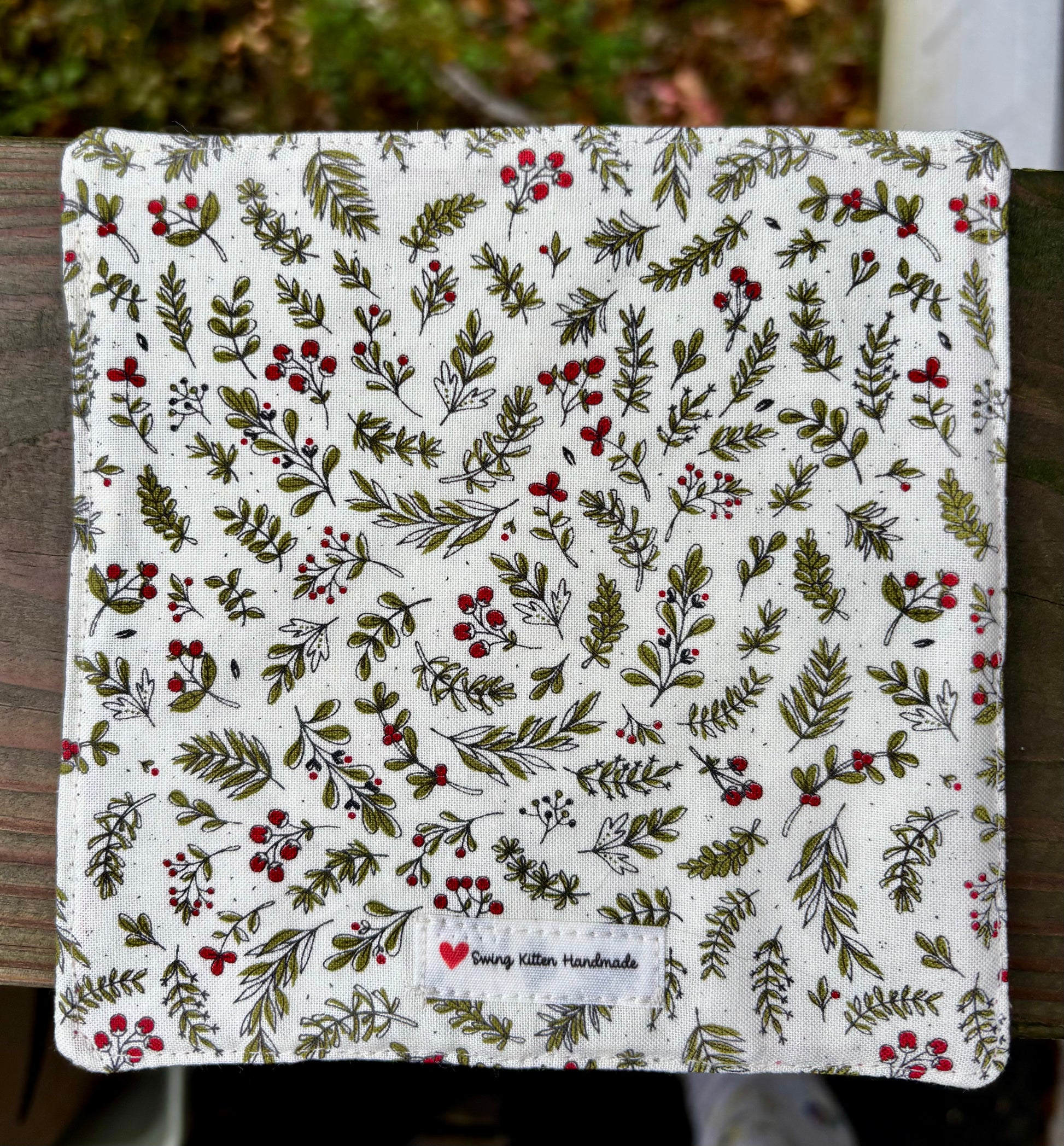 Sweet table mat brings joy to any table or desk all year long. Front panel is lovingly patchwork pieced. Entire mat is quilted for texture and stability.