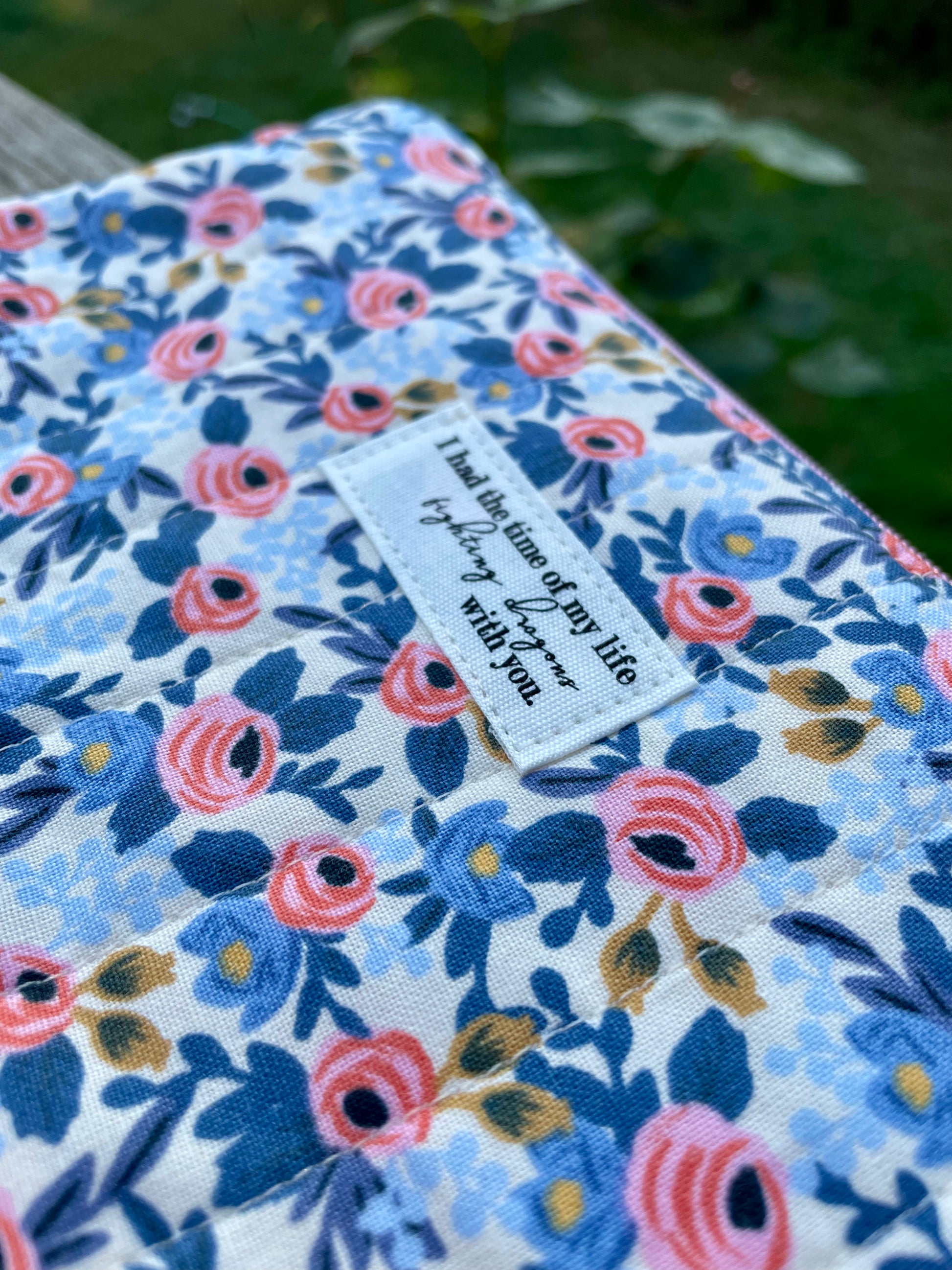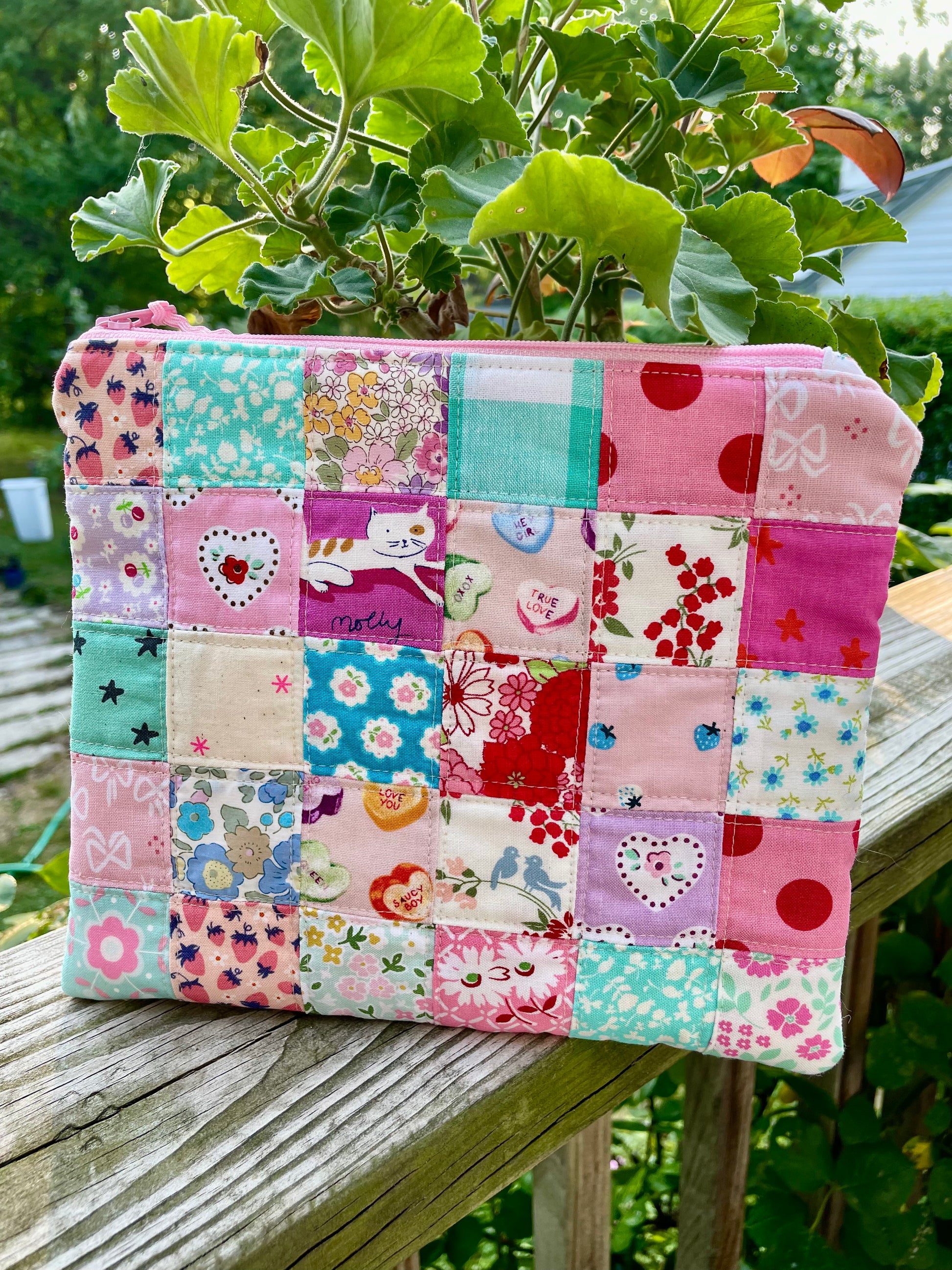 Bag is machine quilted for added stability and texture, and fully lined. I use cotton batting and quilt shop quality fabrics for all my pieces.
