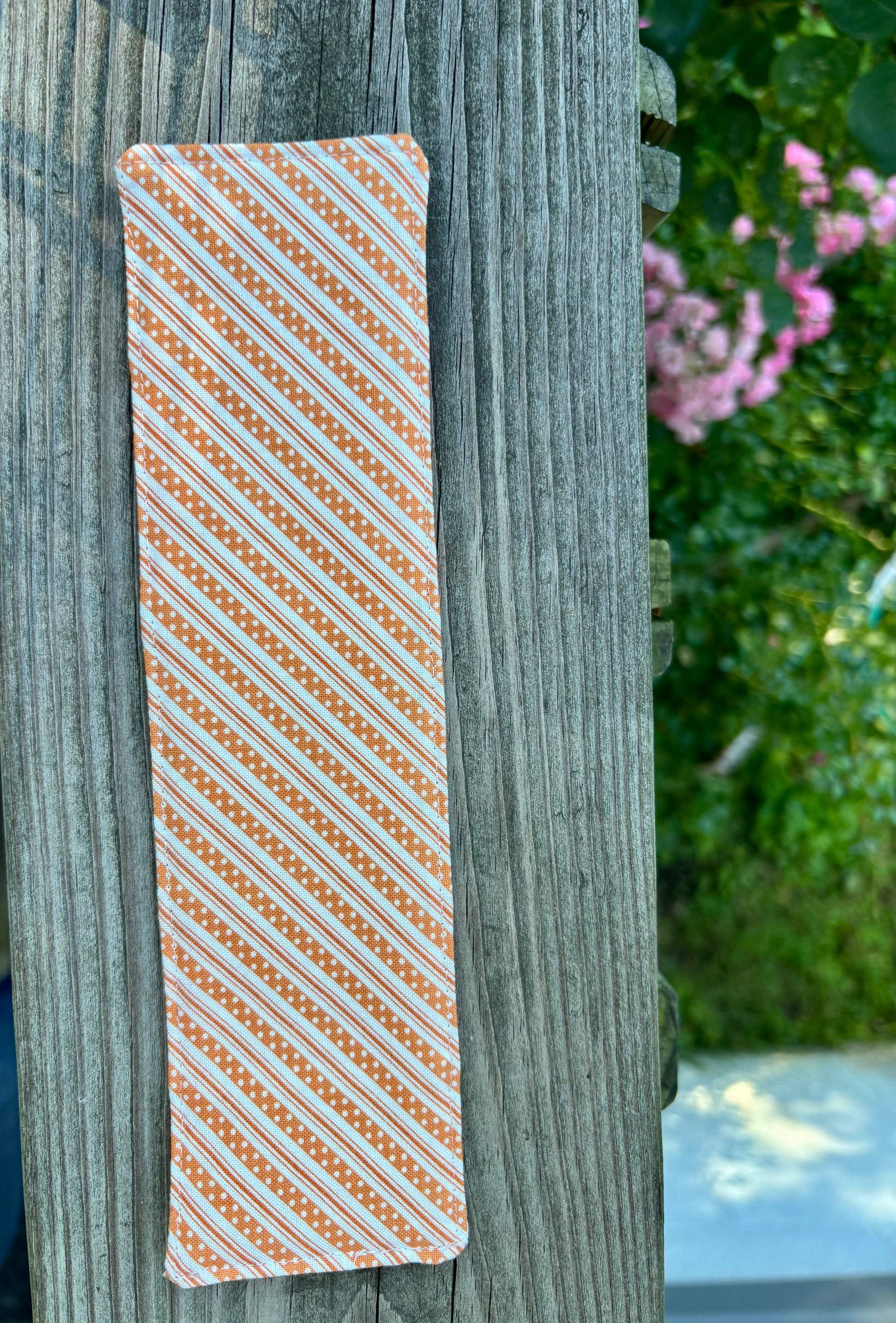 I use quilt shop quilting cottons for the front and back of the bookmark, and add a layer of cotton batting in between. Bookmark is soft to the touch and has great texture.